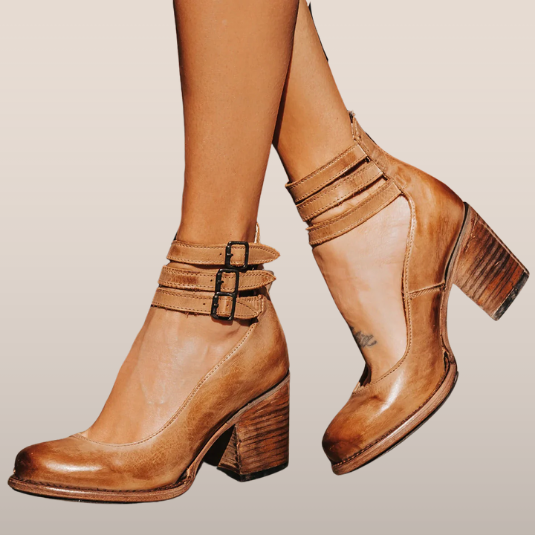 Alvinea | Enkellaarsjes met Blokhak en Gespsluiting