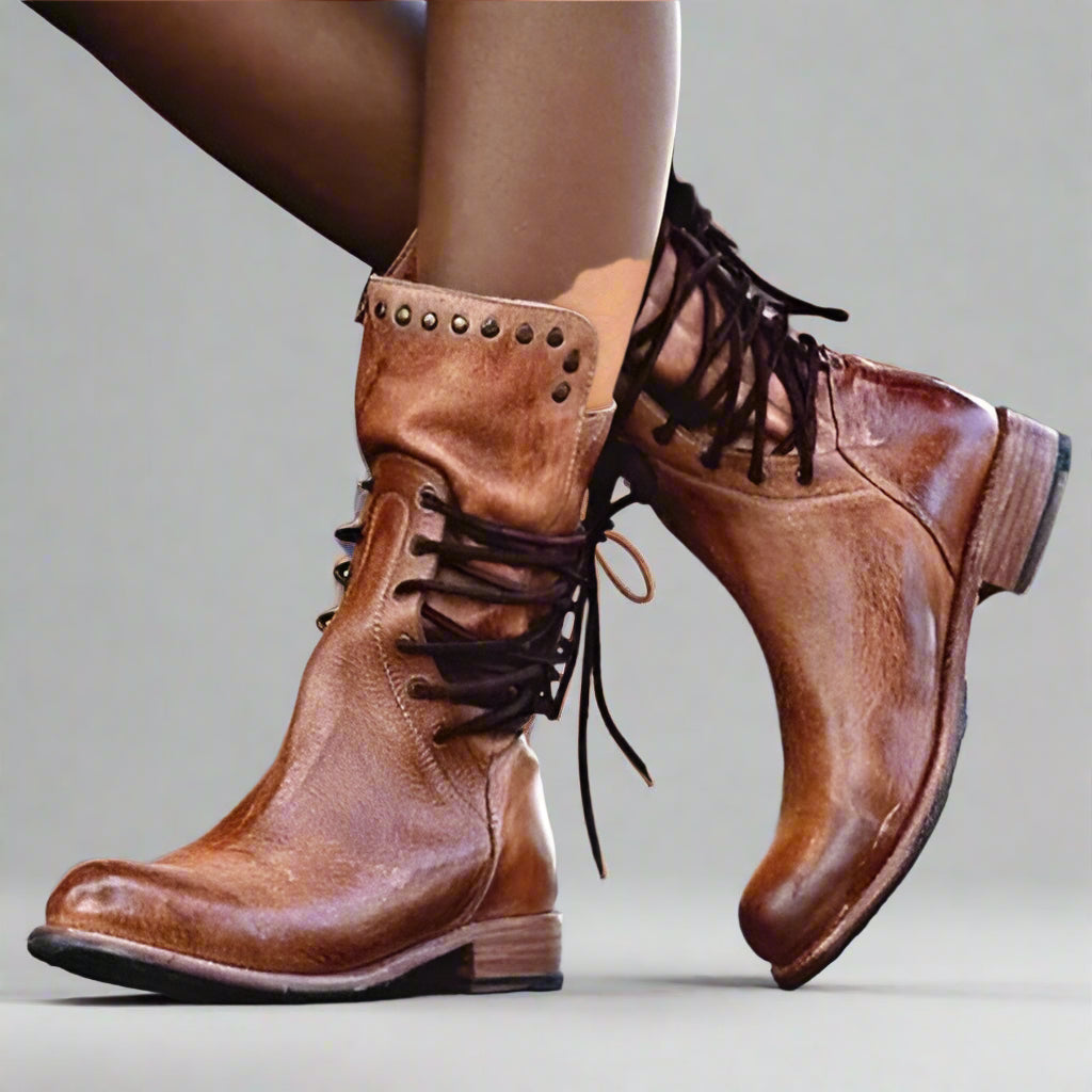 Ardeline is een statement boot voor vrouwen die met zelfvertrouwen de dag instappen. De licht glanzende leerlook, tonale veterdetails en de slanke, stevige schacht zorgen voor een silhouet dat kracht en elegantie perfect in balans brengt.