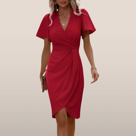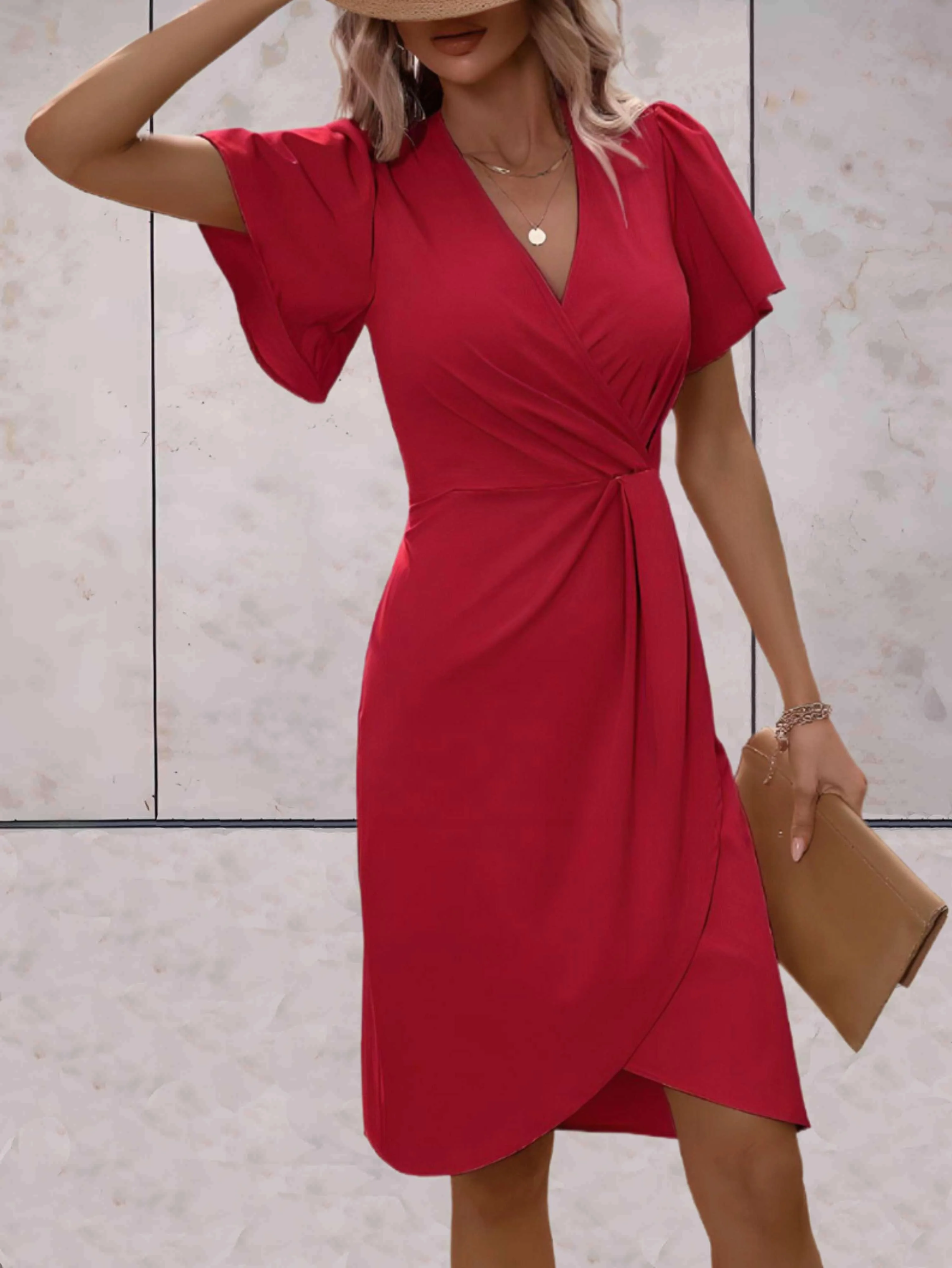 ELVANA | Midi wikkeljurk met V-hals en vlindermouwen