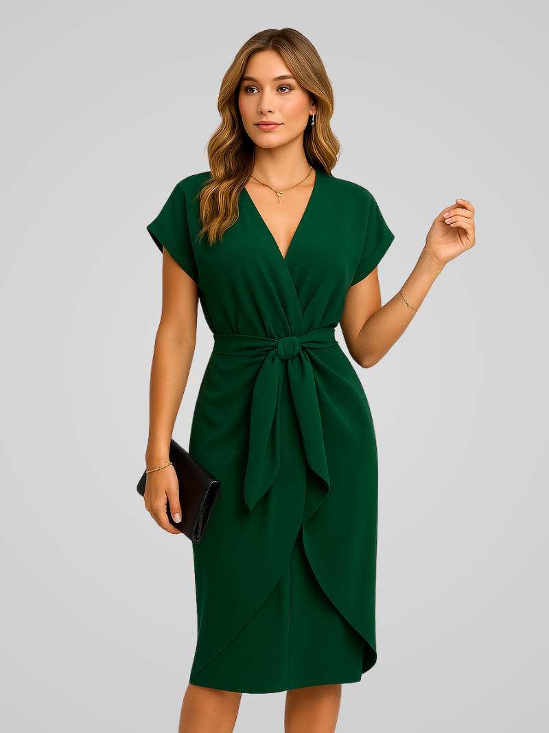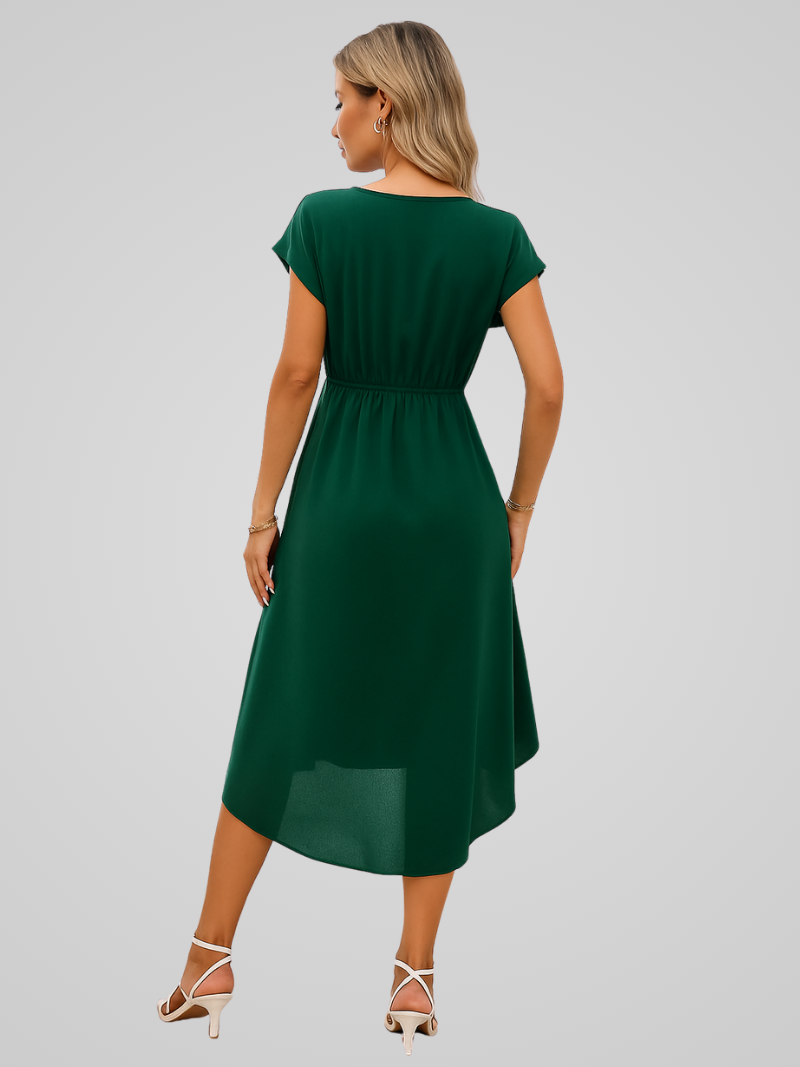 Ivy Sage | Luchtige Midi Jurk met V-hals in Frisse Groentint