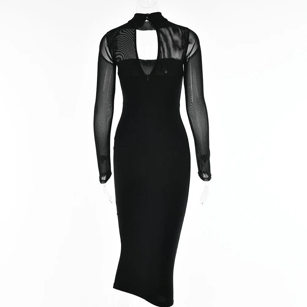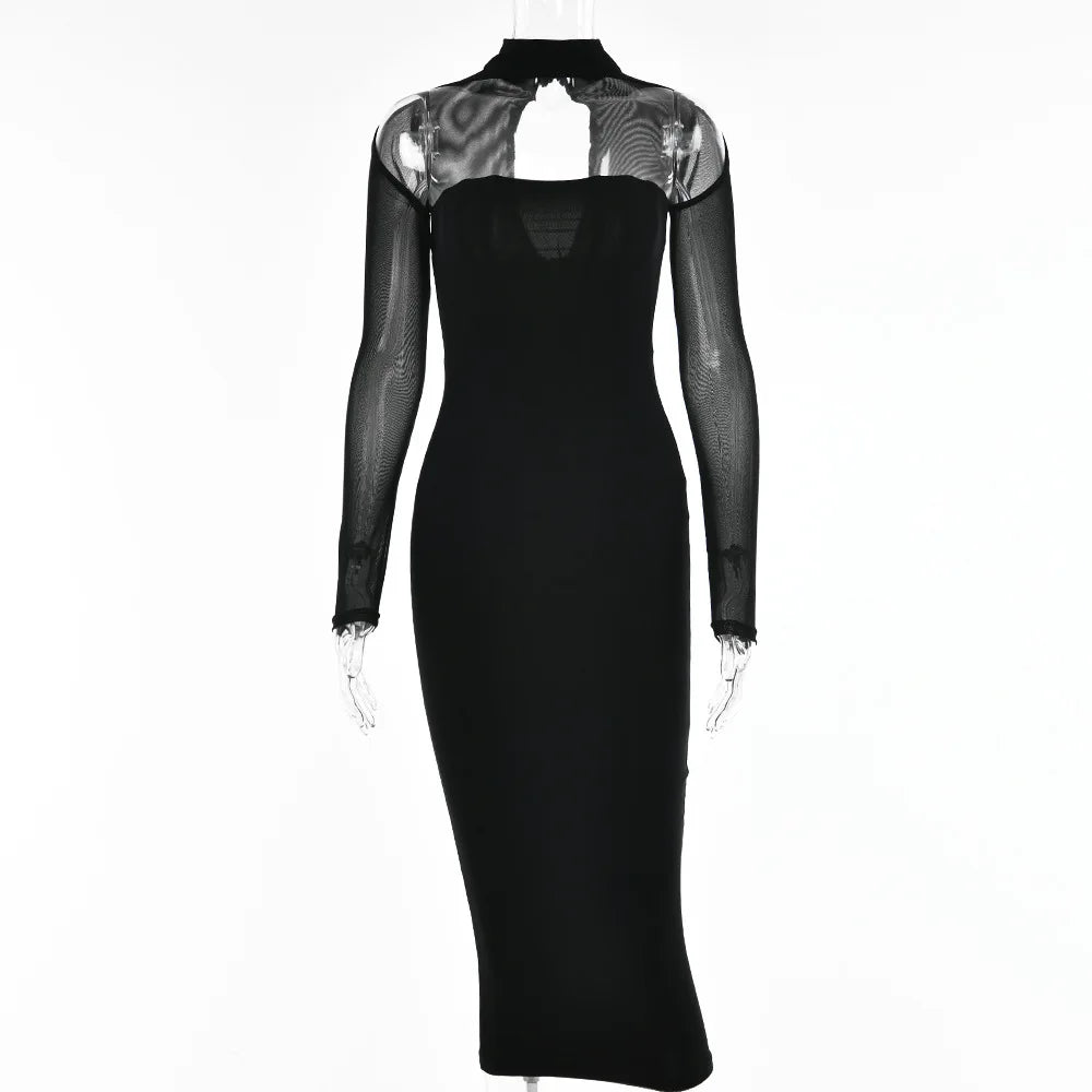 Korset Midi-jurk Met Lange Mouwen – Y2K Elegantie in een Tijdloos Silhouet