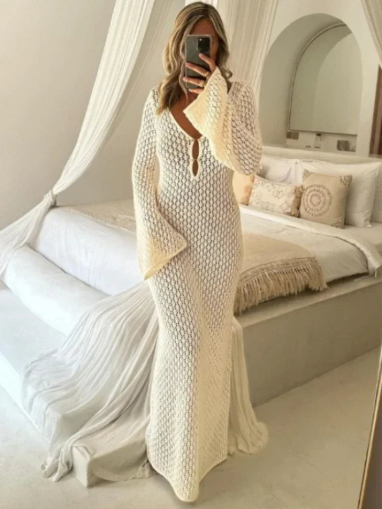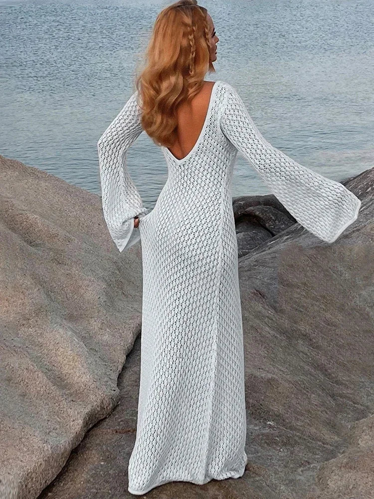 LYSSA | Gebreide Gehaakte Strandjurk met V-Hals en Open Rug