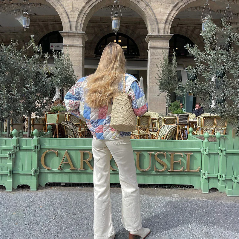 Draag MIRELLA over een basic jeans en T-shirt voor een kleurrijke casual look met karakter.