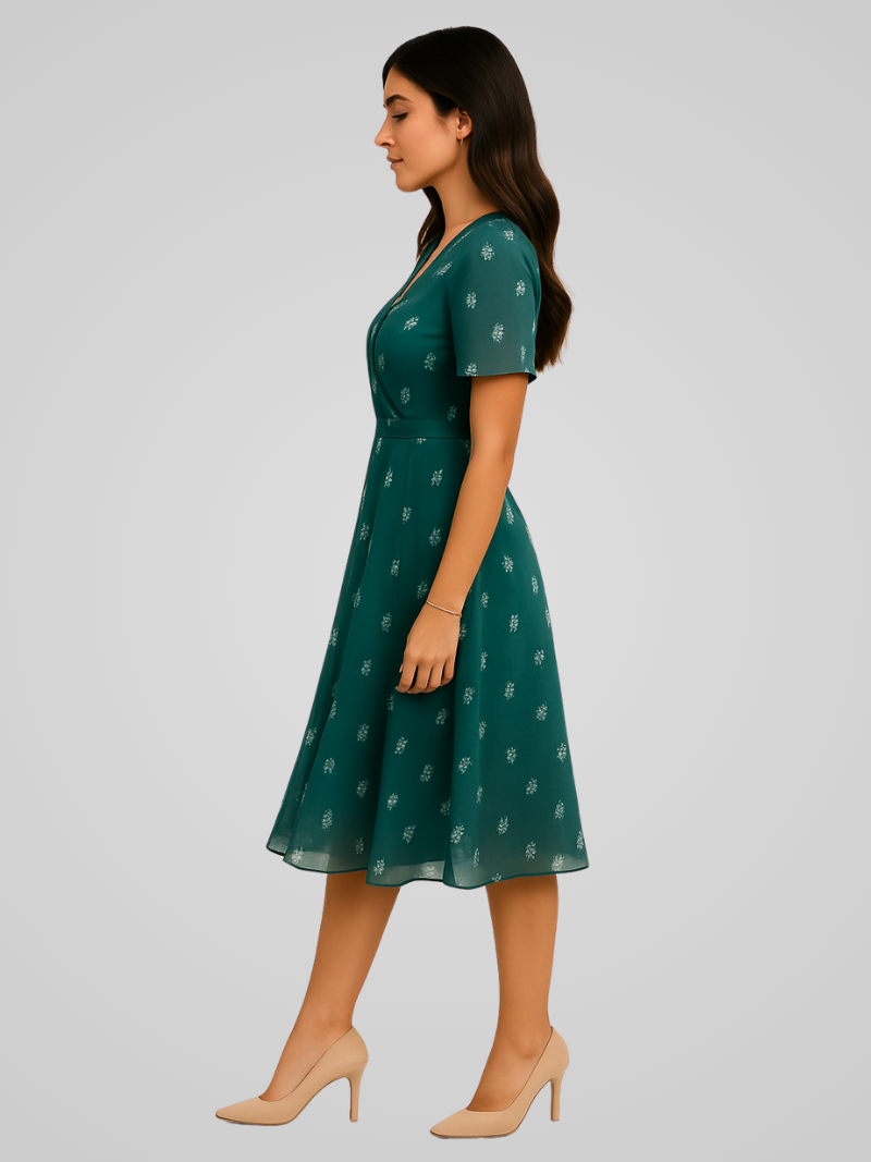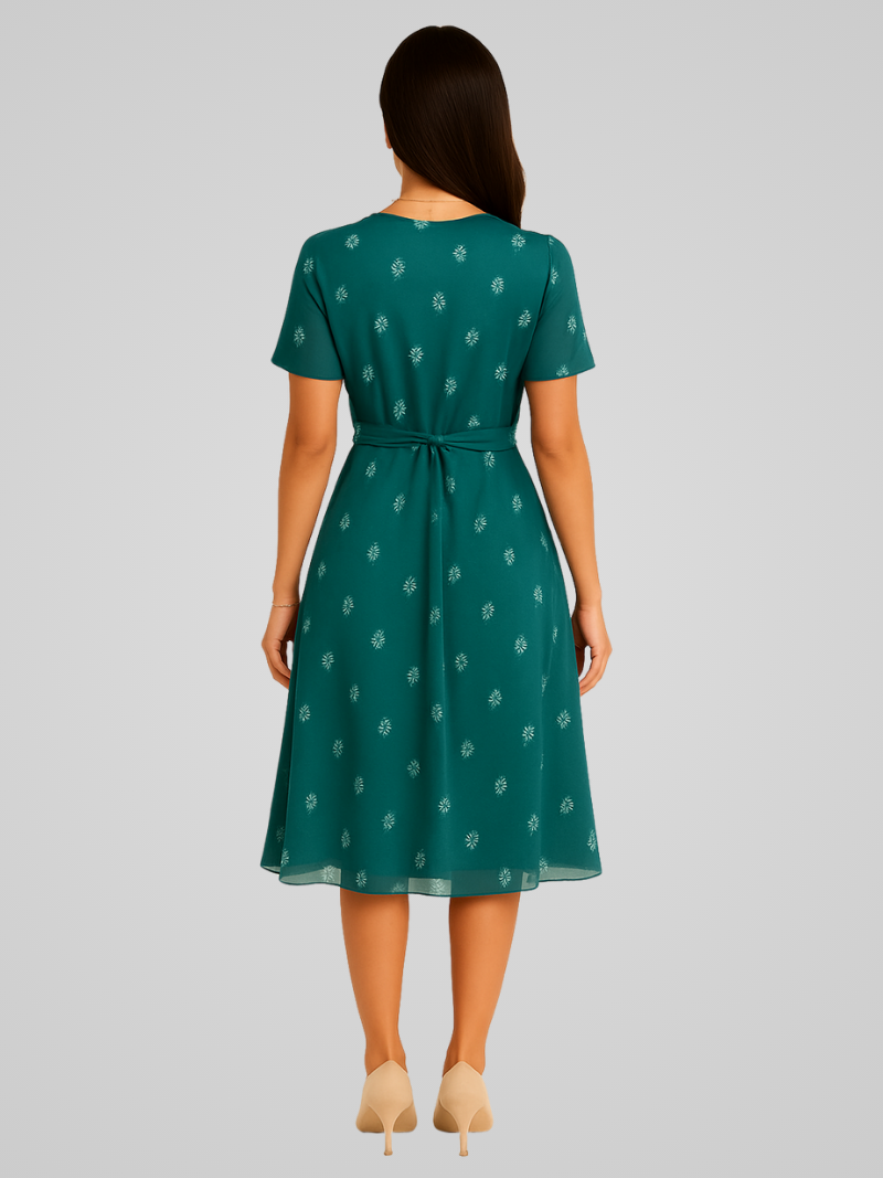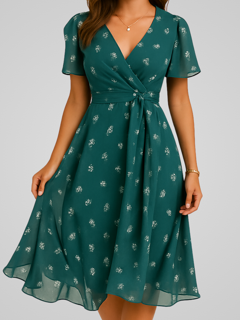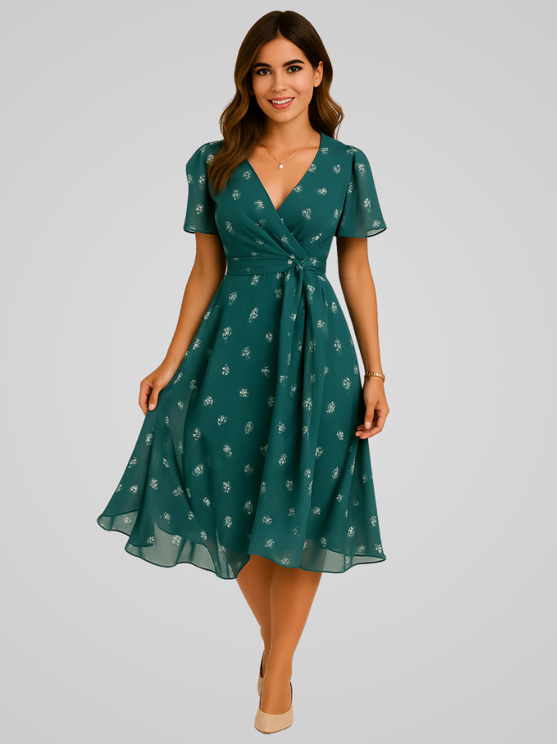 Een stijlvolle keuze voor elke gelegenheid. Selina combineert een elegante V-hals met een luchtige midi-lengte in een subtiel getailleerd silhouet. De soepele stof voelt licht aan op de huid en beweegt zachtjes met je mee, waardoor deze jurk net zo comfortabel is als charmant.