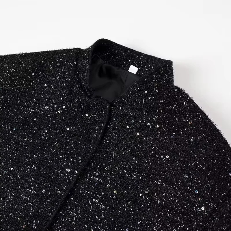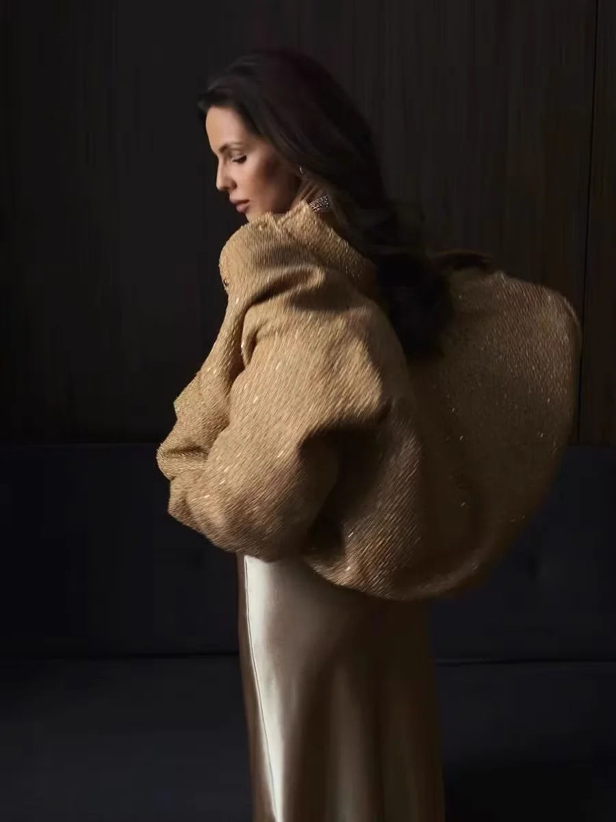 Volledig bedekt met glinsterende pailletten, een losse fit en ballonmouwen – dit jasje is jouw geheime wapen voor feesten, festivals of een opvallende avondlook.